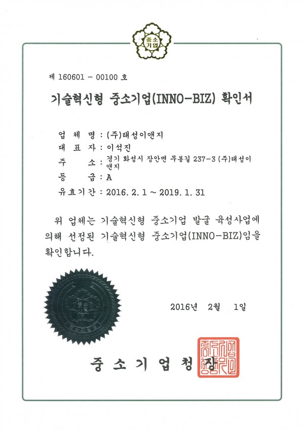 이는 태성이앤지가 한단계 Up-grade하는 계기가 될 것으로 기대하고 좀 더 좋은 모습으로 고객에게 다가갈 수 있게 됐다.